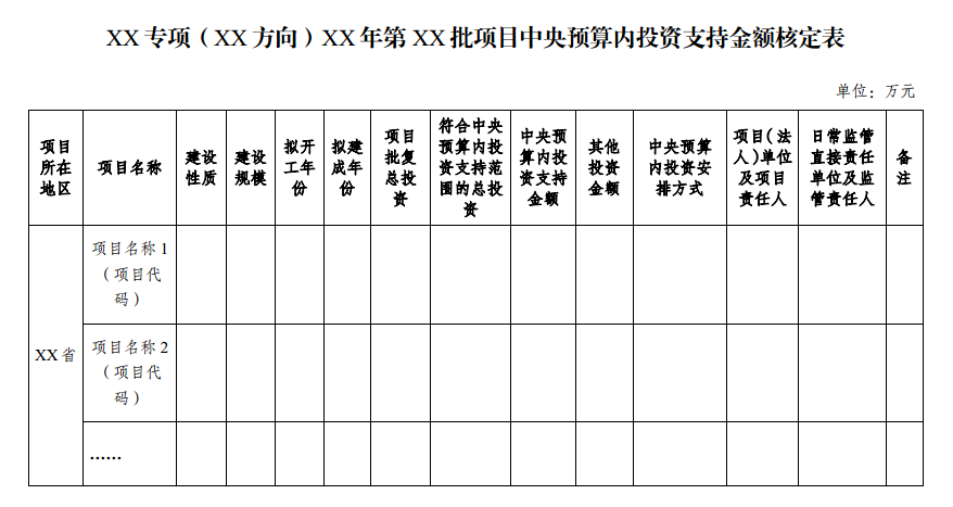 二、在附表中,應(yīng)當(dāng)明確每個項(xiàng)目的中央預(yù)算內(nèi)投資支持金額,并在“備注”欄中注明“本次批復(fù)資金申請報(bào)告”。